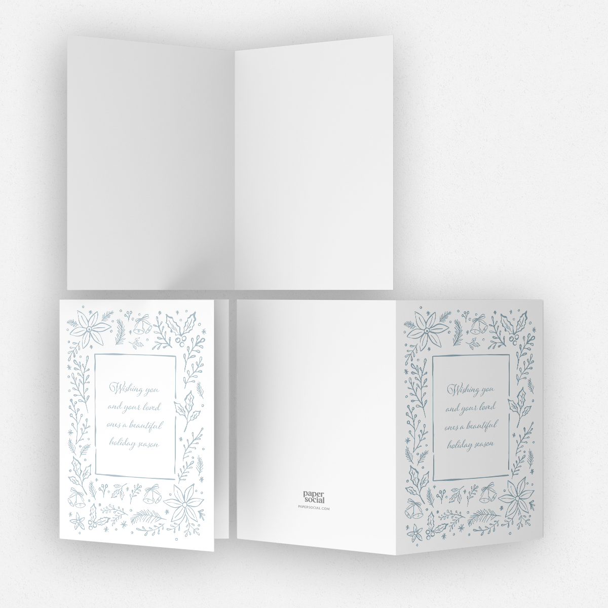 Each holiday card is a folded design and comes blank inside, ready for your personal message. The set comes beautifully packaged in a box and includes free white envelopes.